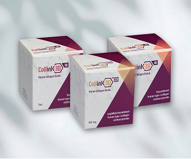 Collink.3DTM is a bioink platform material for biofabrication of scaffolds, tissues and organs for 3D modeling and transplantation. Biofabricated constructs composed of Collink.3DTM can be used in a wide range of tissue model applications, including drug discovery, drug screening, disease modeling and tissue testing. In addition, it can be used for the research, development and manufacture of transplantable tissues, scaffolds and organs with complex architectures, to meet specific properties.