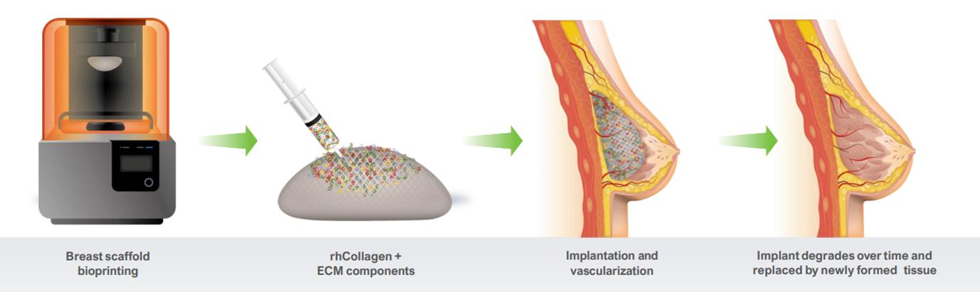 In the field of medical aesthetics, we are developing 3D-bioprinted breast implants for regeneration of breast tissue. The implants in development are printed and loaded with our rhCollagen-based bioink in combination with other proprietary biomaterials. These implants are expected to regenerate breast tissue without eliciting immune response, and thus may provide a revolutionary alternative for aesthetic and reconstructive procedures. In December 2023 we initiated a pre-clinical trial to evaluate commercial-size, 3D-bioprinted, regenerative breast implants. This study will be used to obtain data to support subsequent human studies and future product commercialization.